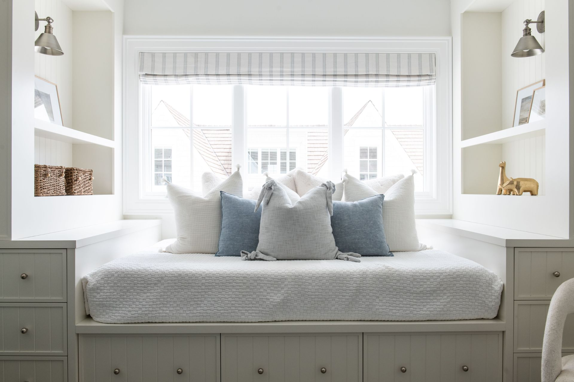 Many designers aim for a clean, architectural look where window treatments disappear when they’re not in use.
